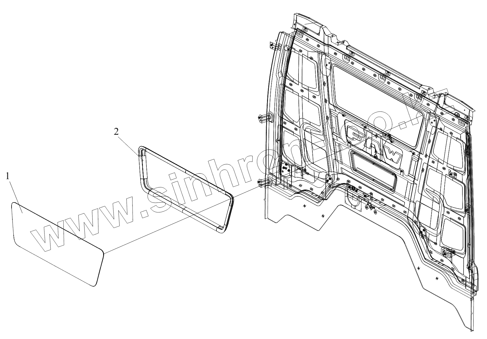 Каталог запасных частей к технике: FAW CA 3250 серии J6. Заднее стекло
