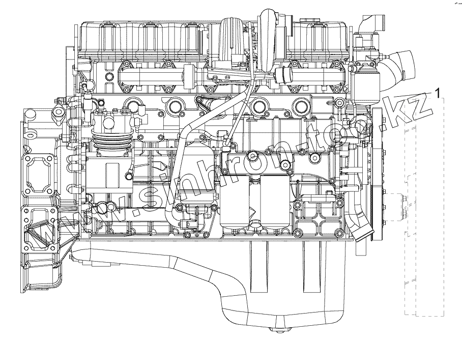 Каталог запасных частей к технике: FAW CA-3252. Двигатель (вид справа)