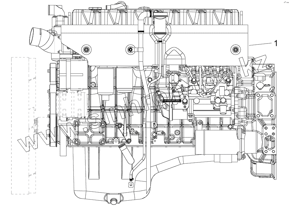 Каталог запасных частей к технике: FAW CA-3252. Двигатель без подогрева топлива (вид слева)