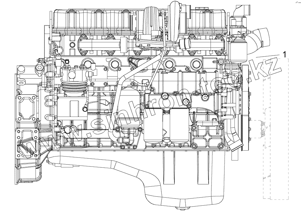 Каталог запасных частей к технике: FAW CA-3252. Двигатель без подогрева топлива (вид справа)