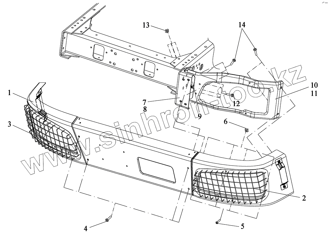 Каталог запасных частей к технике: FAW CA-3252. Передний бампер