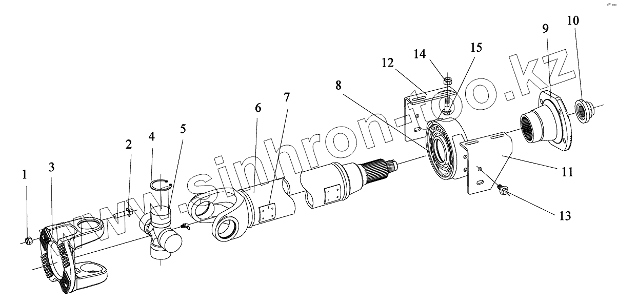 Каталог запасных частей к технике: FAW CA-3252. Промежуточный карданный вал среднего моста