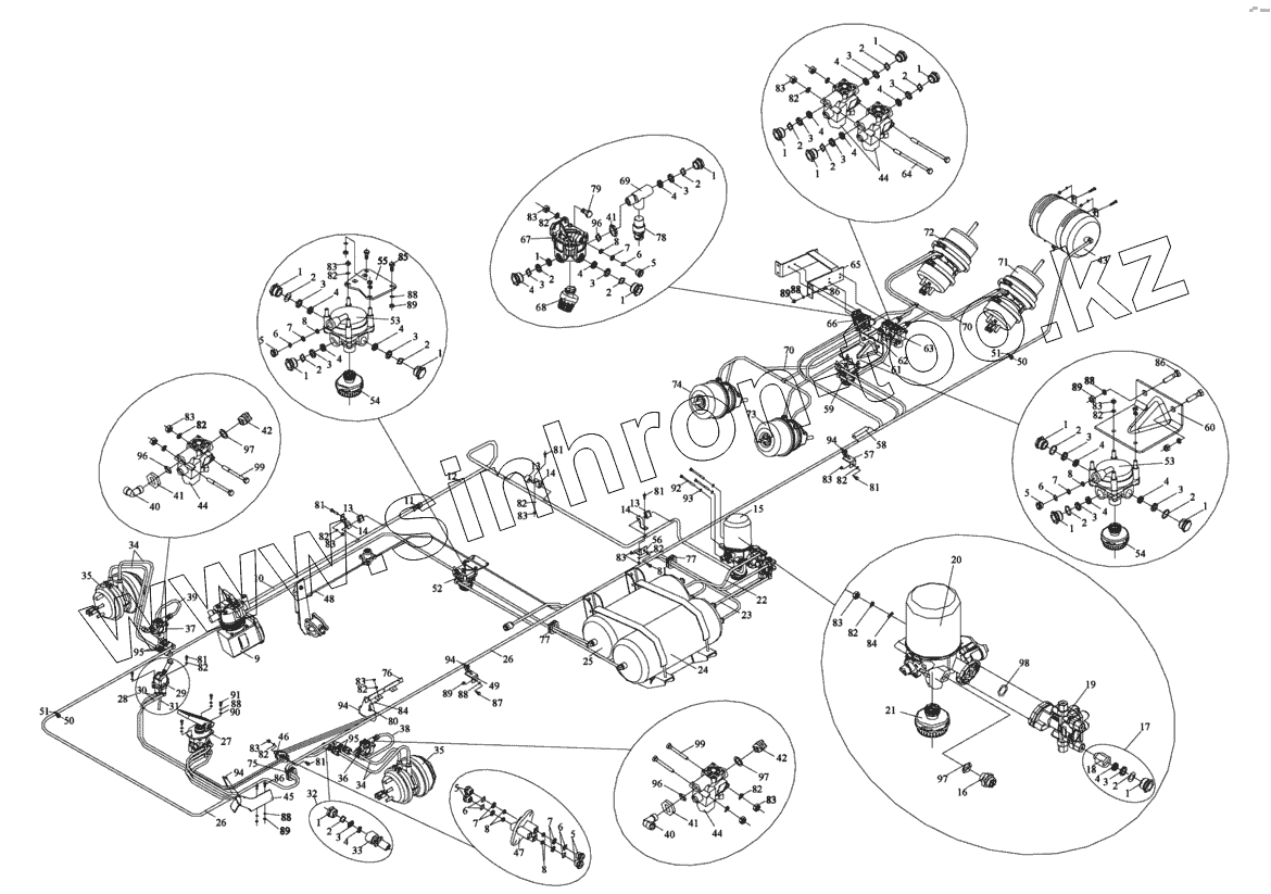 Каталог запасных частей к технике: FAW CA-3252. Схема тормозной системы