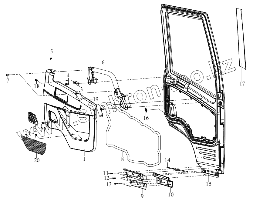 Каталог запасных частей к технике: FAW CA-3252 (P2K2BT1A). Интерьер двери