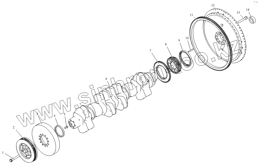 Каталог запасных частей к технике: FAW CA-3252 (P2K2BT1A). Коленчатый вал, шкив и маховик