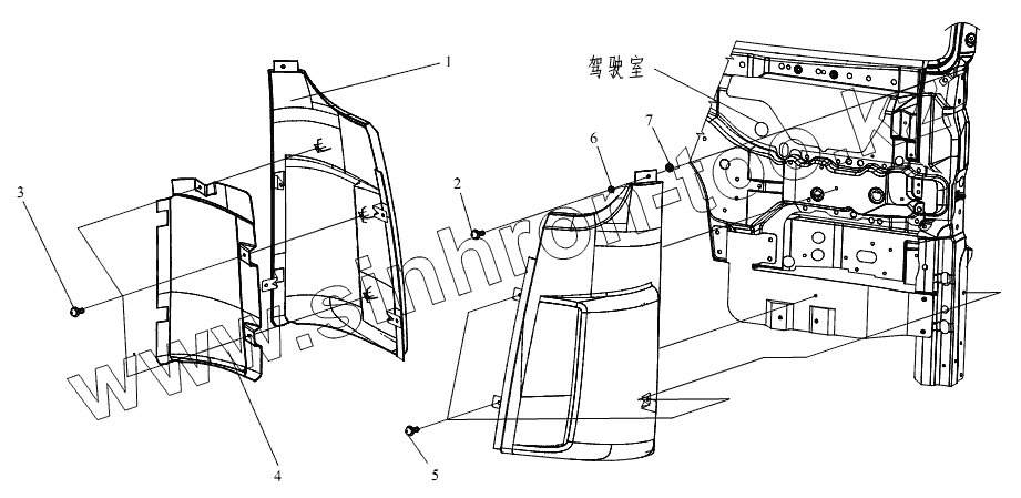 Каталог запасных частей к технике: FAW CA-3252 (P2K2BT1A). Передняя боковая внешняя панель