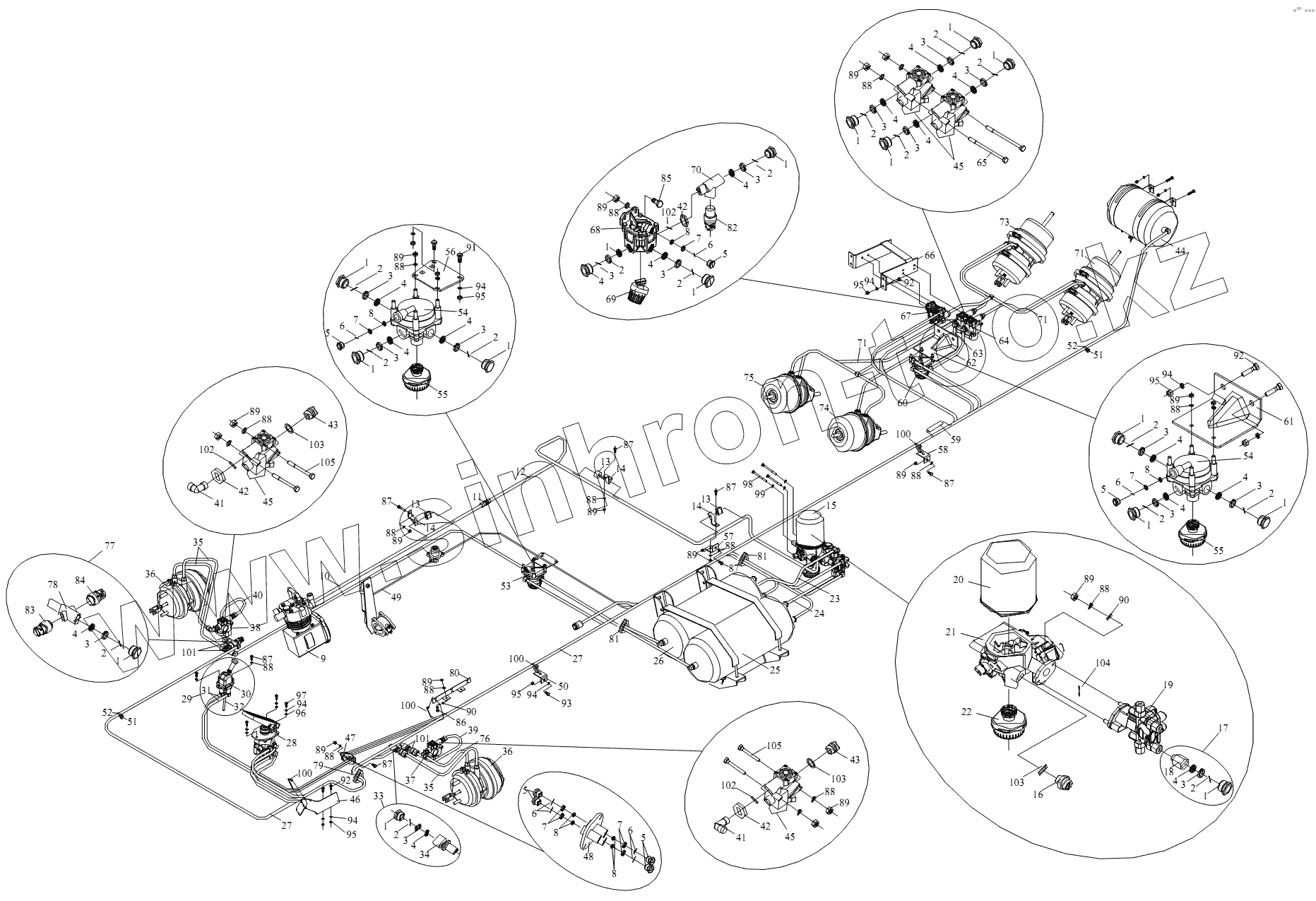 Каталог запасных частей к технике: FAW CA-3252 (P2K2BT1A). Тормозная магистраль
