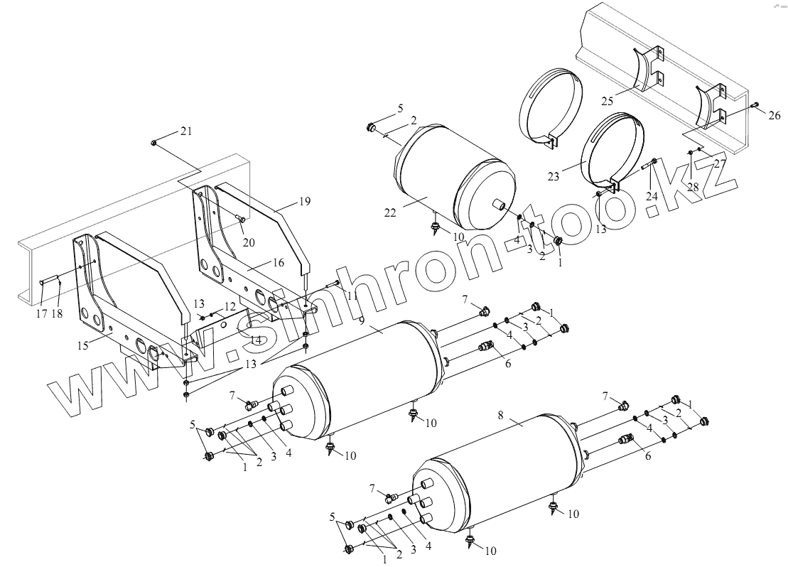 | 8 | 3513070-515 | Двухконтурный воздушный резервуар в сборе | |