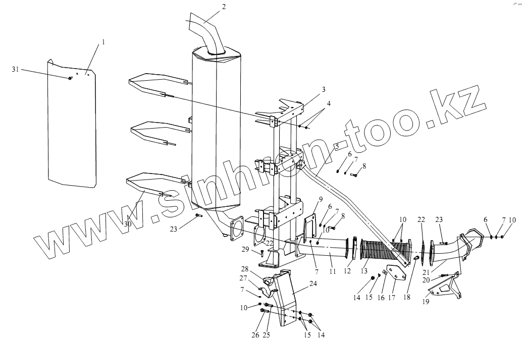 Каталог запасных частей к технике: FAW CA-3252 (P2K2BT1A). Выпускная система