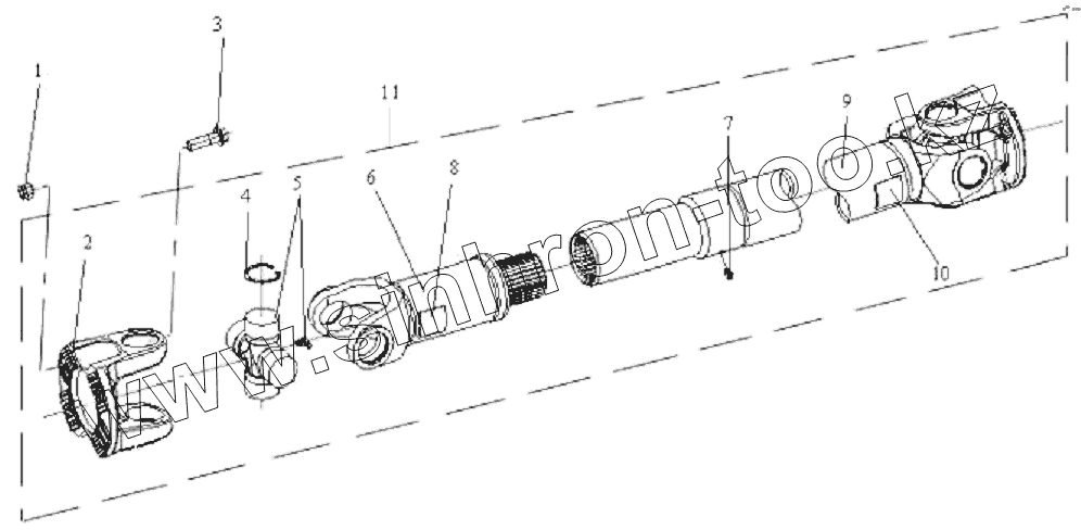 Каталог запасных частей к технике: FAW CA-3252 (P2K2T1A). Карданный вал среднего моста
