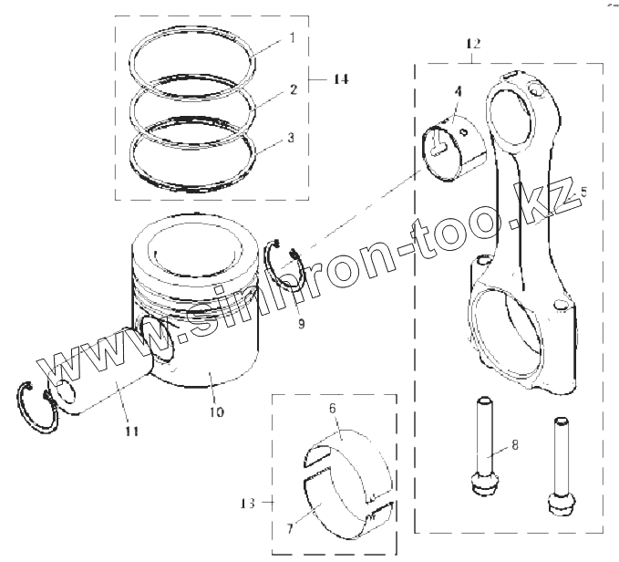 Каталог запасных частей к технике: FAW CA-3252 (P2K2T1A). Поршень, шатун