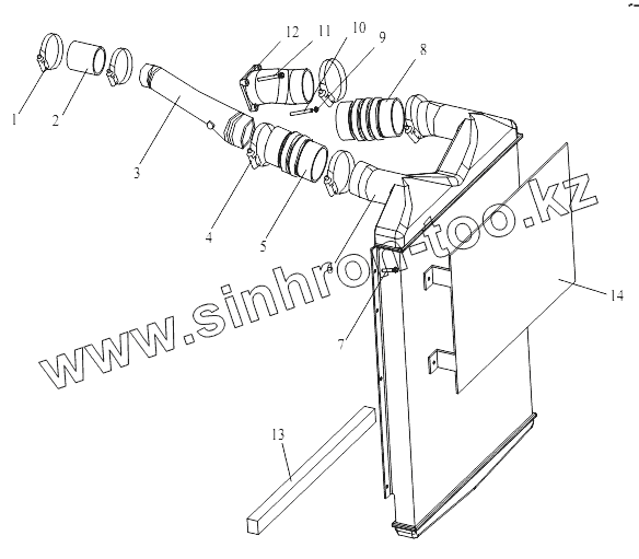 Каталог запасных частей к технике: FAW CA-3252 (P2K2T1A). Промежуточный охладитель, трубопровод