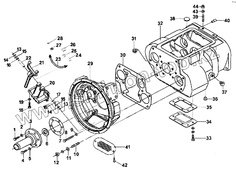 Каталог запасных частей к технике: FAW CA-3252 (P2K2T1A). Сцепление и корпус КПП