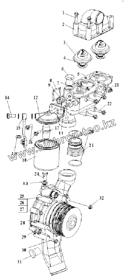 Каталог запасных частей к технике: FAW CA-3252 (P2K2T1A). Термостат, водяной насос, стойка вентилятора