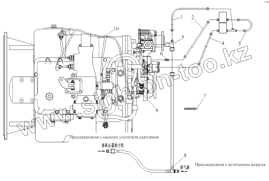 Каталог запасных частей к технике: FAW CA-3252 (P2K2T1A). Управляющая магистраль КПП