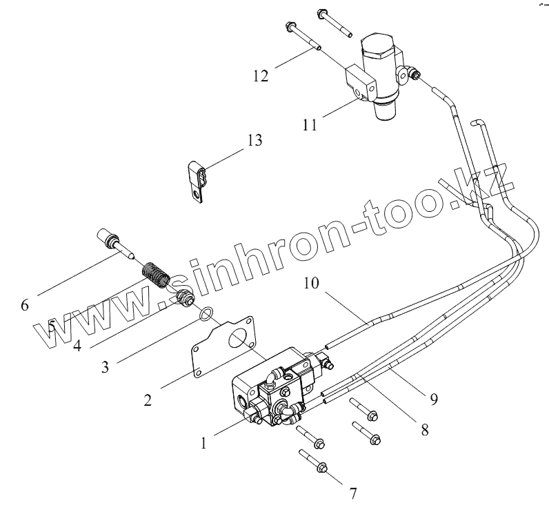 Каталог запасных частей к технике: FAW CA 3310 серии J6. Клапан, шланги и фитинги