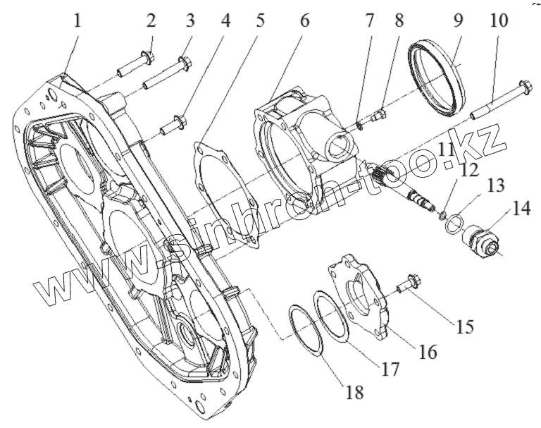Каталог запасных частей к технике: FAW CA 3310 серии J6. Корпус вспомогательной КПП