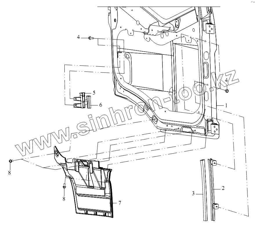 Каталог запасных частей к технике: FAW CA 3310 серии J6. Нижние декоративные панели дверей