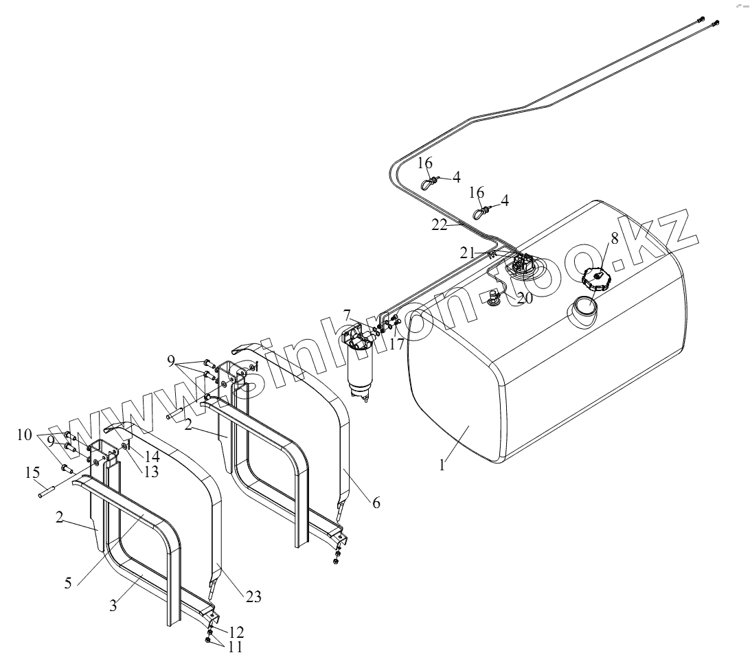 Каталог запасных частей к технике: FAW CA 3310 серии J6. Топливный бак и топливопроводы