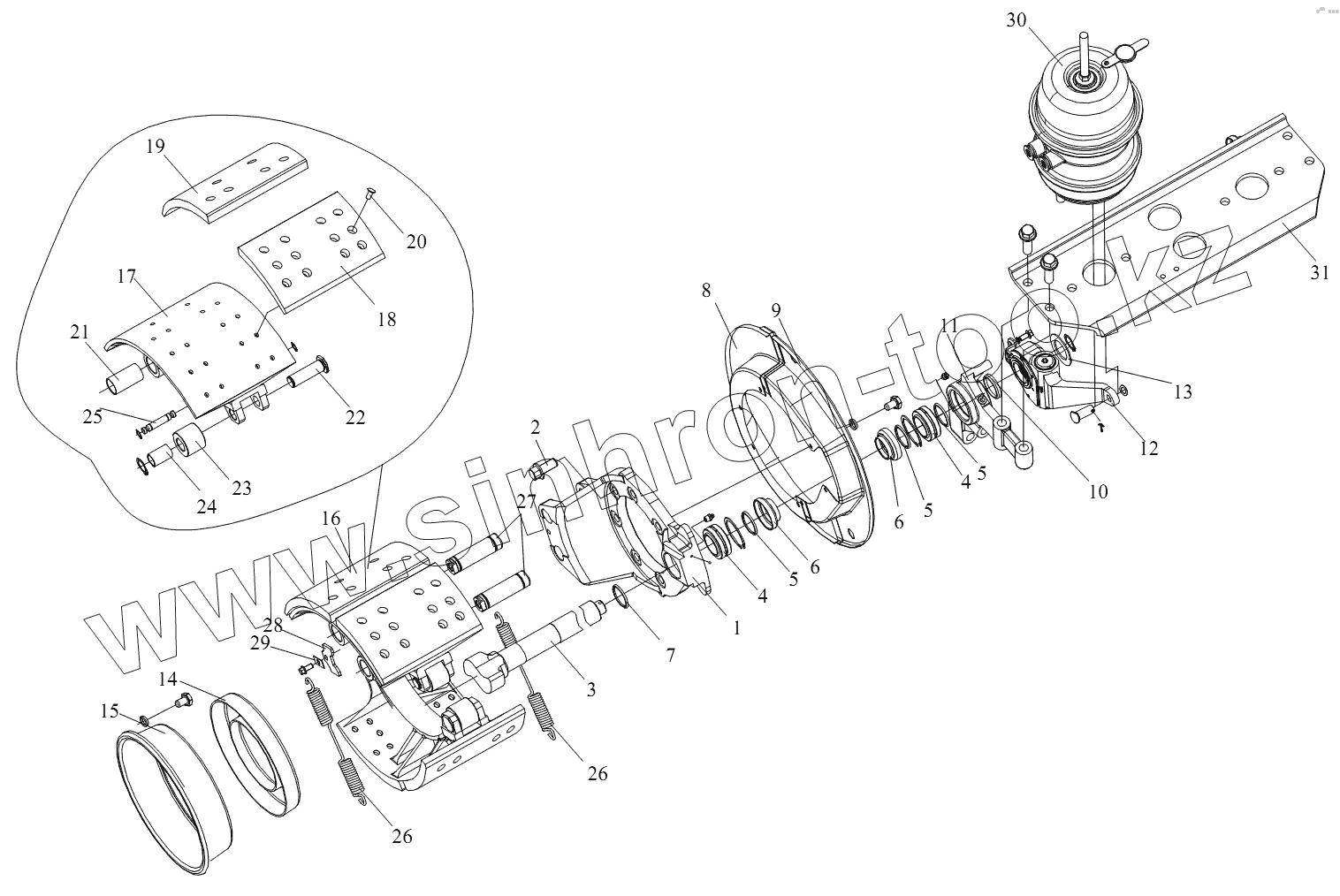 | 31 | 3502126A483 | Опорная пластина тормозного цилиндра в пружинным энергоаккумулятором |