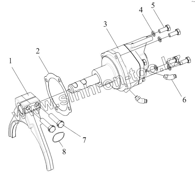 Каталог запасных частей к технике: FAW CA 3310 серии J6. Цилиндр переключения вспомогательных передач