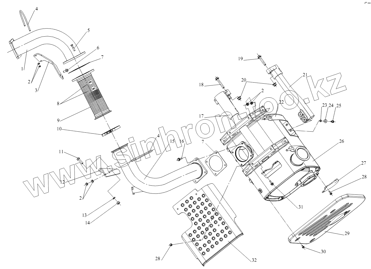 Каталог запасных частей к технике: FAW CA 3310 серии J6. Выхлопная система