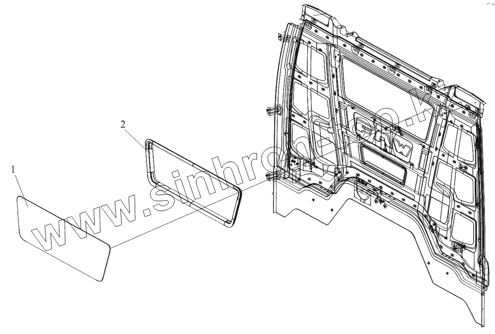 Каталог запасных частей к технике: FAW CA 3310 серии J6. Заднее стекло