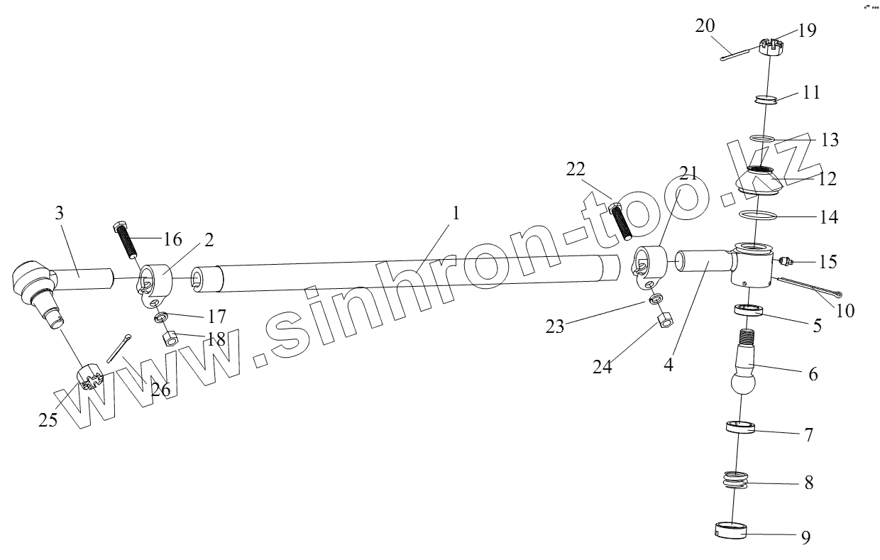 Каталог запасных частей к технике: FAW CA 3310 серии J6. Задняя продольная рулевая тяга