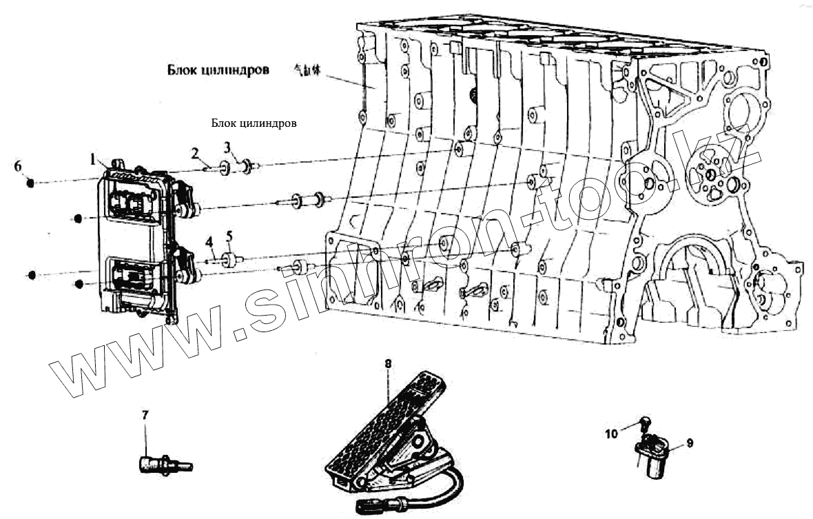 Каталог запасных частей к технике: FAW CA-3312 (P2K2B2T4A2Z). Электронные компоненты управления двигателя