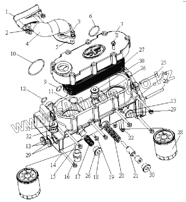 Каталог запасных частей к технике: FAW CA-3312 (P2K2B2T4A2Z). Масляный охладитель