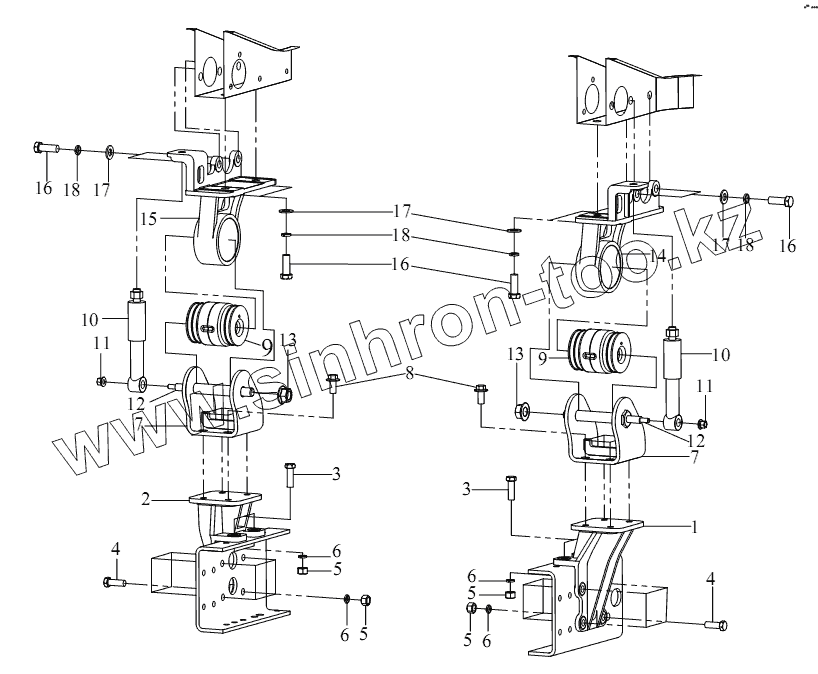 Каталог запасных частей к технике: FAW CA-3312 (P2K2B2T4A2Z). Передняя подвеска кабины