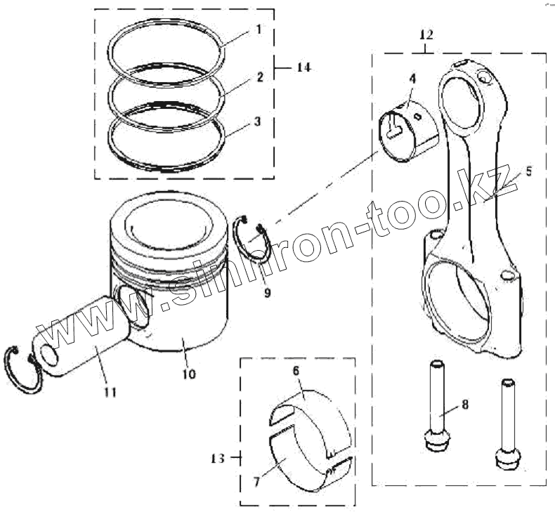 Каталог запасных частей к технике: FAW CA-3312 (P2K2B2T4A2Z). Поршень, шатун