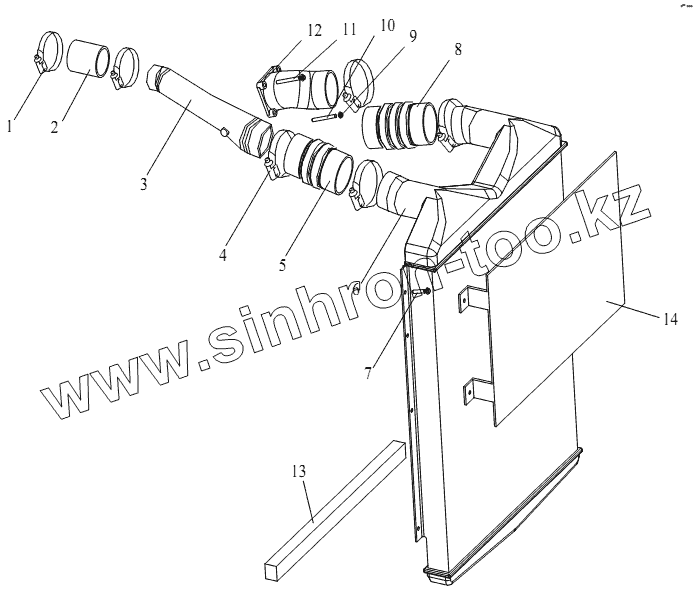 Каталог запасных частей к технике: FAW CA-3312 (P2K2B2T4A2Z). Промежуточный охладитель, трубопровод