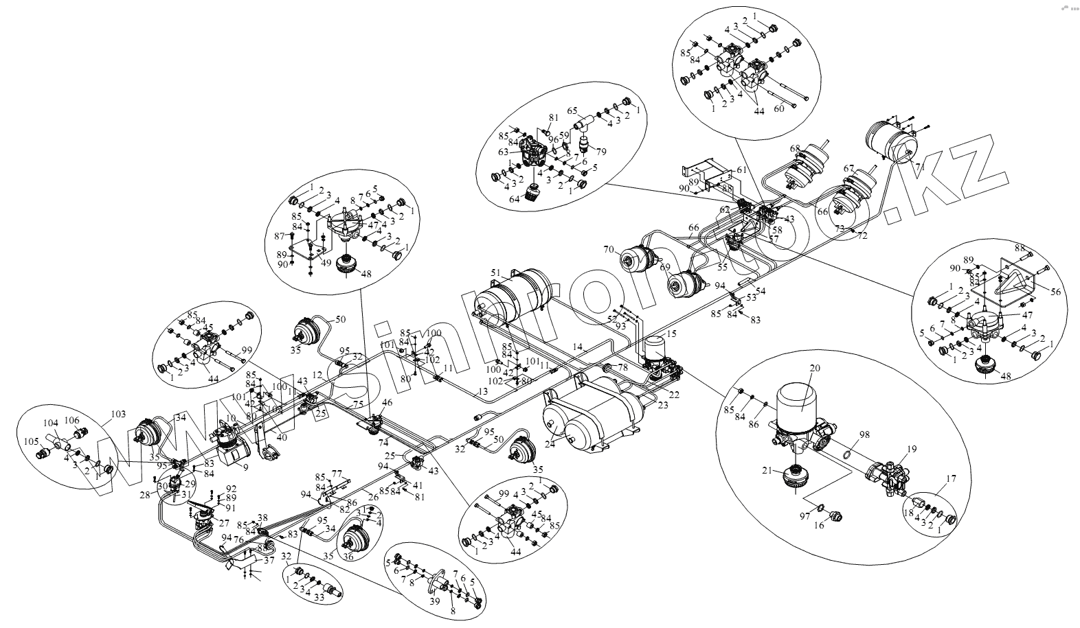 Каталог запасных частей к технике: FAW CA-3312 (P2K2B2T4A2Z). Тормозная магистраль