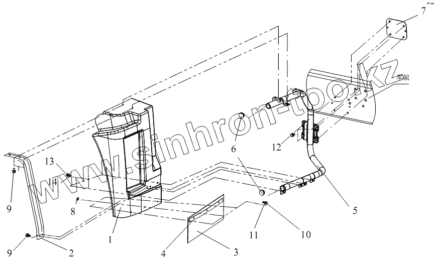 Каталог запасных частей к технике: FAW CA-3312 (P2K2B2T4A2Z). Задний грязезащитный козырек