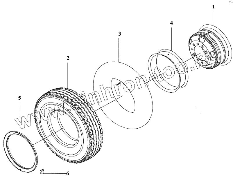 Каталог запасных частей к технике: FAW CA-3312 (P2K2LT4E). Колеса и шины в сборе