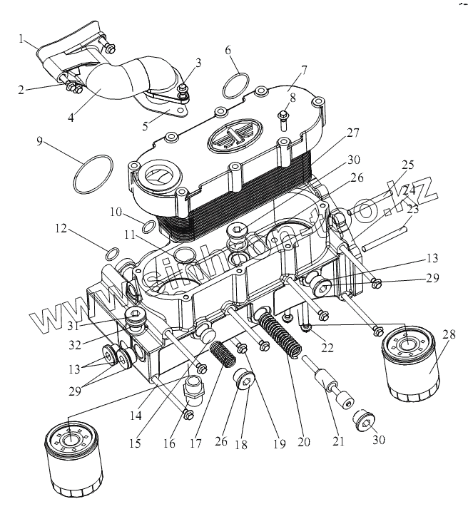 Каталог запасных частей к технике: FAW CA-3312 (P2K2LT4E). Масляный охладитель