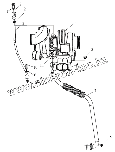 Каталог запасных частей к технике: FAW CA-3312 (P2K2LT4E). Система турбонаддува