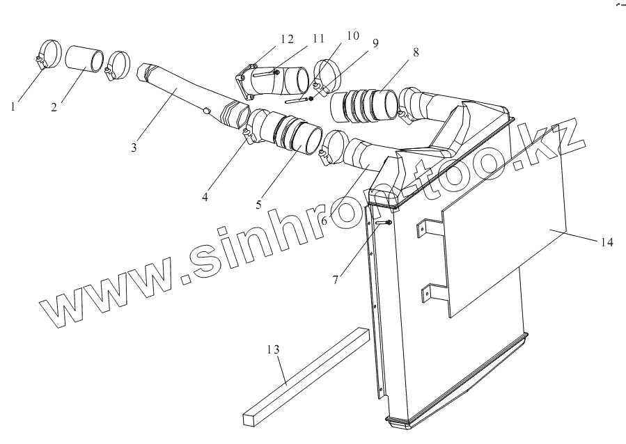 Каталог запасных частей к технике: FAW CA-3312 (P2K2LT4E). Центральное охлаждение, магистраль