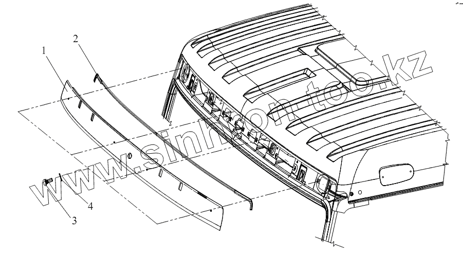 Каталог запасных частей к технике: FAW CA-3312 (P2K2LT4E). Верхняя отделочная плита переднего ветрового стекла