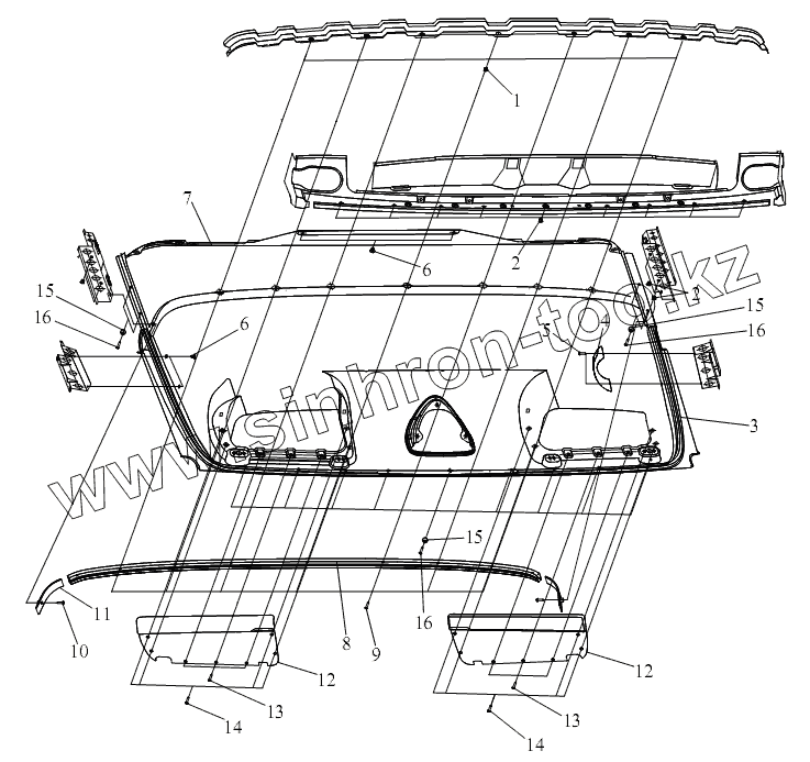 Каталог запасных частей к технике: FAW CA-3312 (P2K2LT4E). Внутрений щиток покрышки