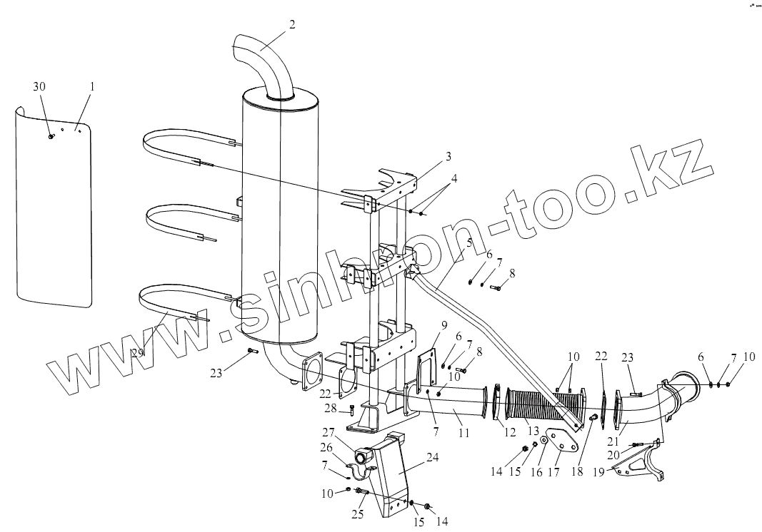 Каталог запасных частей к технике: FAW CA-3312 (P2K2LT4E). Выпускная система