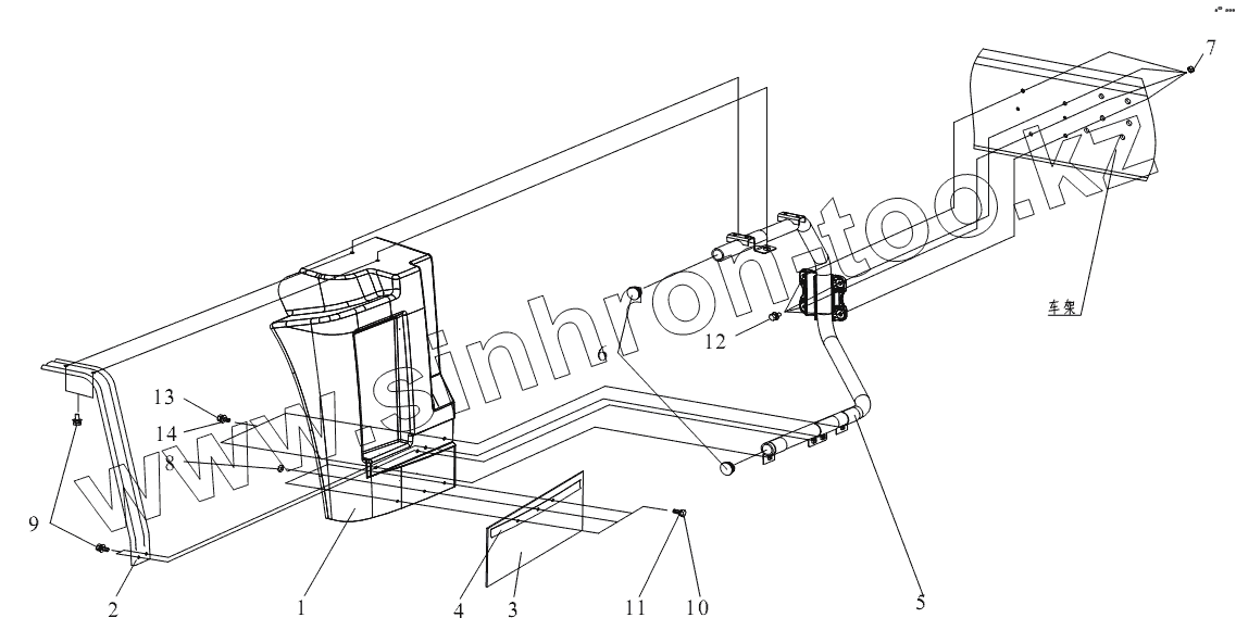 Каталог запасных частей к технике: FAW CA-3312 (P2K2LT4E). Задний грязезащитный козырек