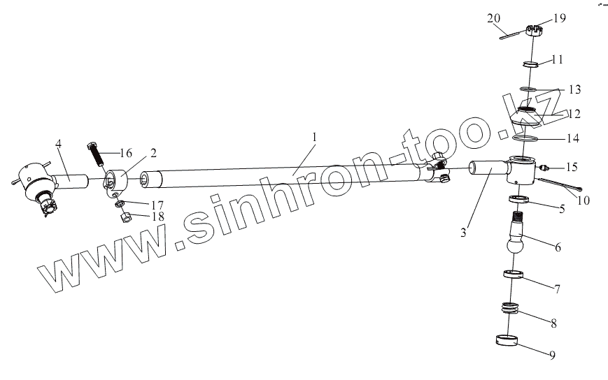 Каталог запасных частей к технике: FAW CA-3312 (P2K2LT4E). Задняя рулевая вертикальная штанга