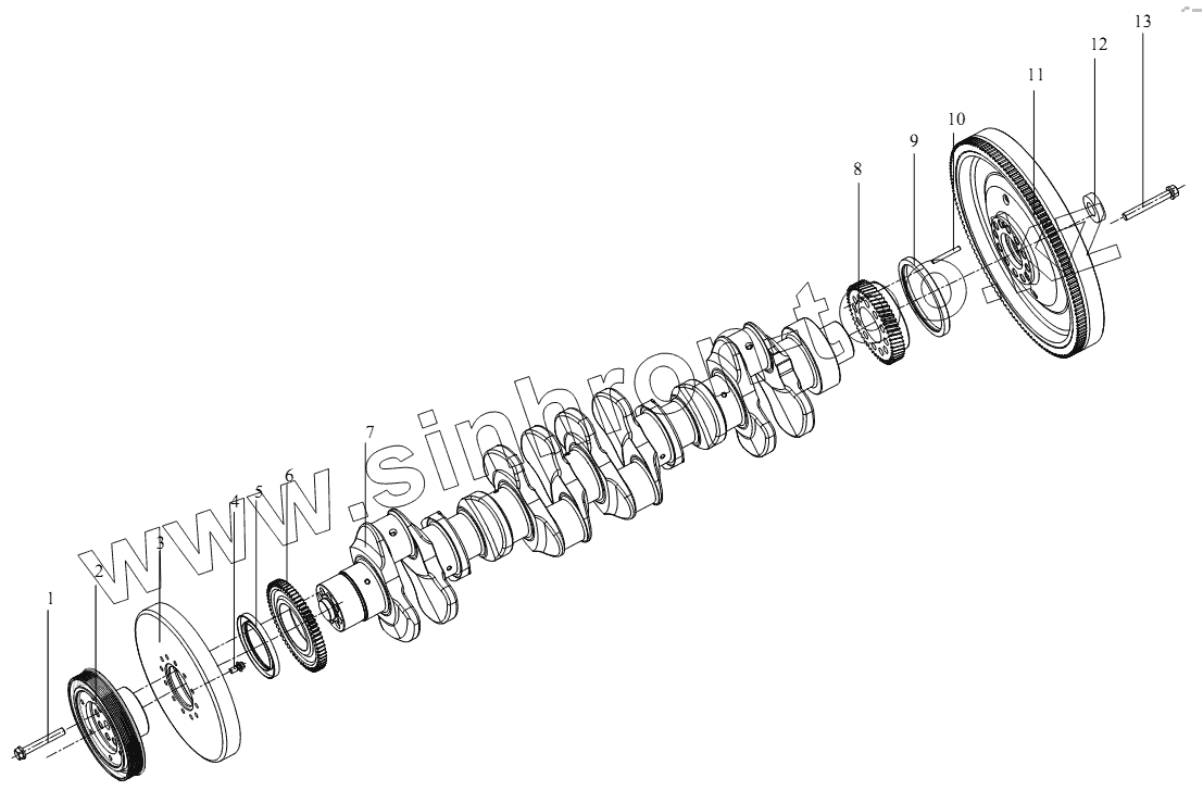 Коленчатый вал, шкив и маховик