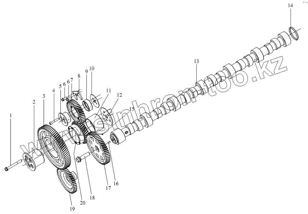 Каталог запасных частей к технике: FAW CA-4180 (P66K22A). Кулачковый вал и блок распределительных шестерен