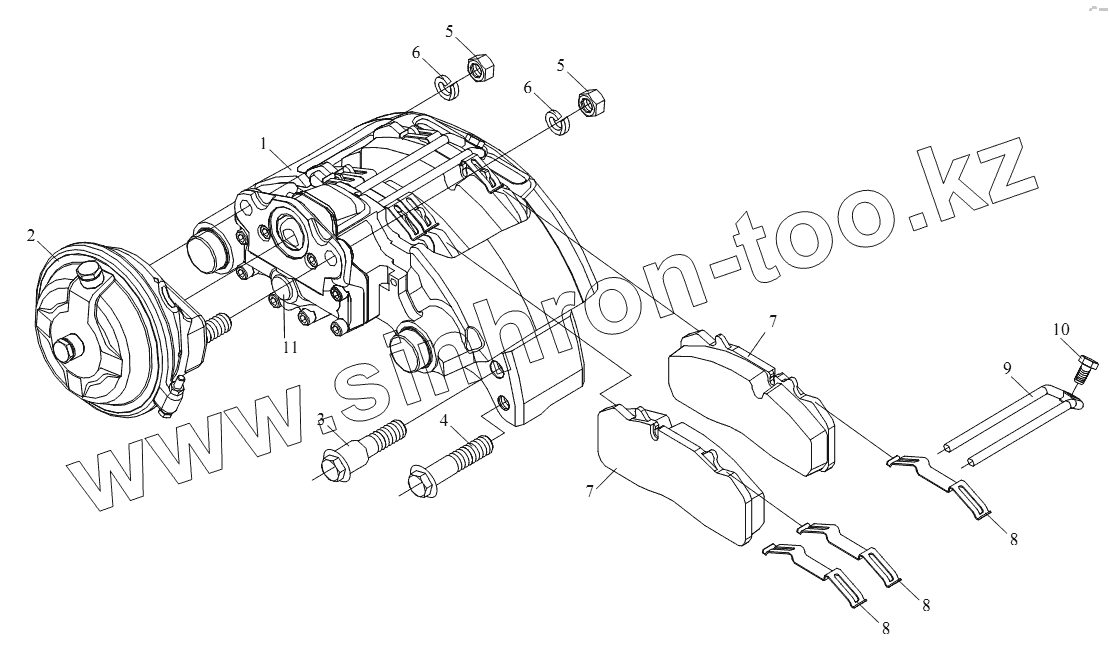 Каталог запасных частей к технике: FAW CA-4180 (P66K22A). Передний дисковый тормоз