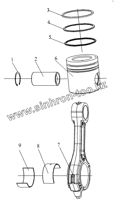 Каталог запасных частей к технике: FAW CA-4180 (P66K22A). Поршень, шатун