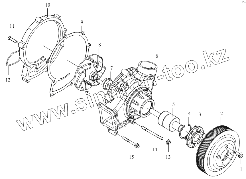 Каталог запасных частей к технике: FAW CA-4180 (P66K22A). Водяной насос