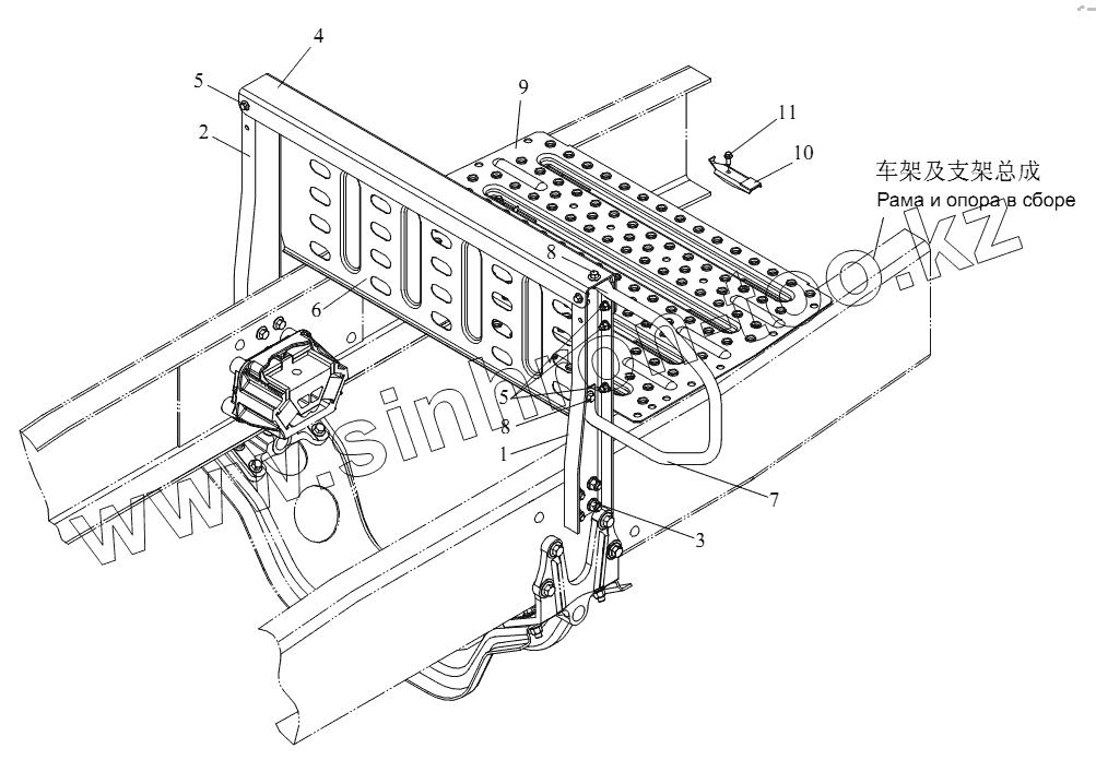 Каталог запасных частей к технике: FAW CA-4180 (P66K22A). Вспомогательное устройство прицепа и рабочая площадка